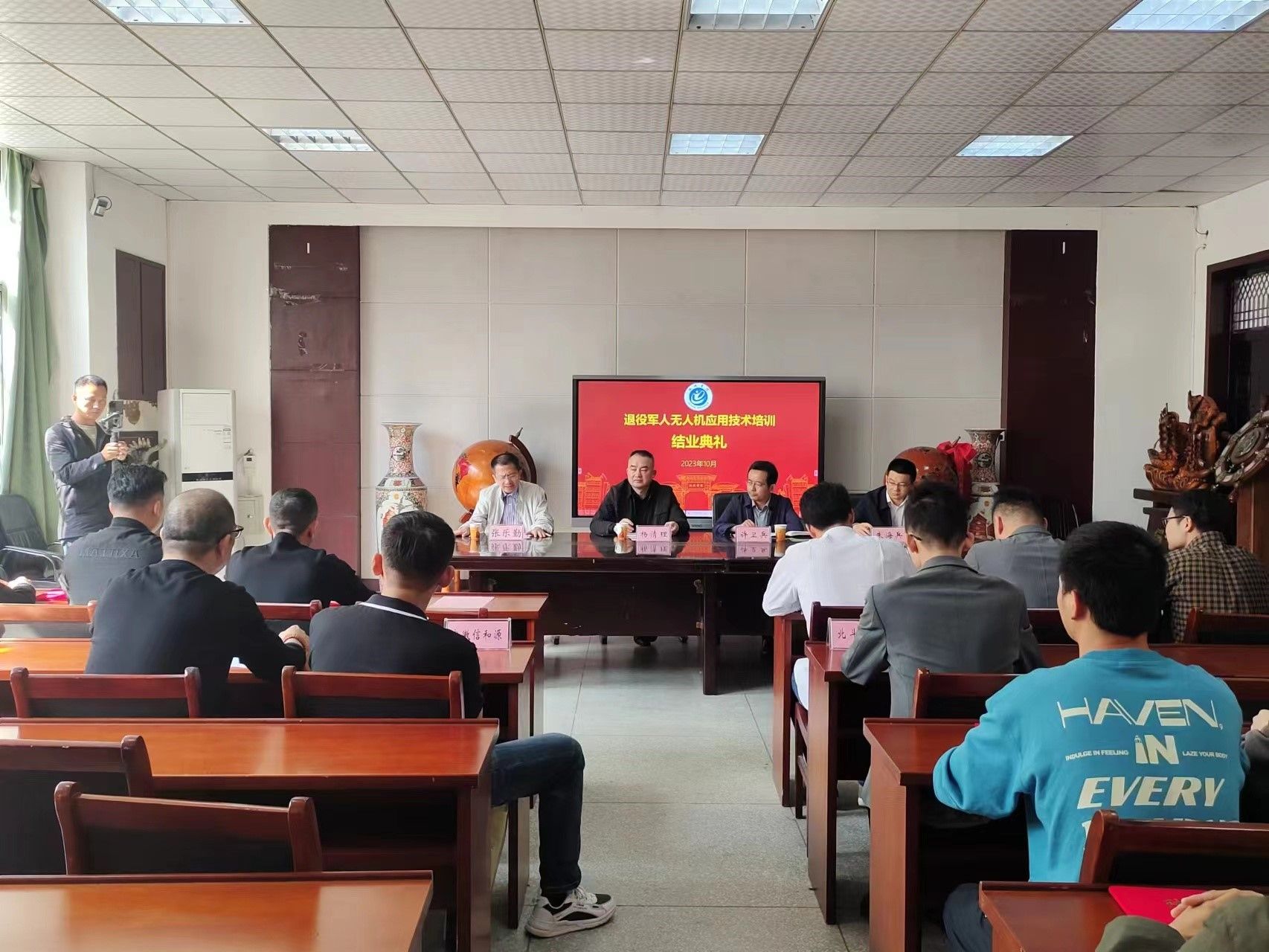 10月17日至30日,万象城awcsport官网承办的池州市退役军人无人机应用技术培训班圆满结束。10月30日在万象城awcsport官网会议室举行了隆重的结业典礼,池州市退役军人事务局副局长杨清理、安置科科长朱海兵、万象城awcsport官网班子成员及全体培训学员出席。结业典礼由万象城awcsport官网院长张乐勤主持。